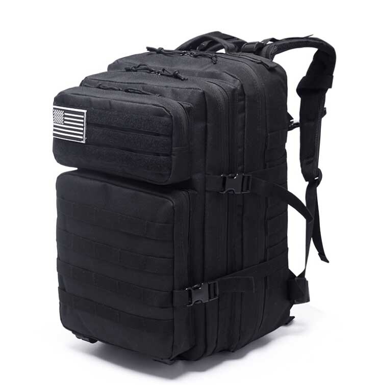 - ブラック バックパック 45L アウトドア 大容量リュックサック MOLLEシステム 多機能 宿泊 撥水 防災 丈夫 頑丈 旅行 通学 登山