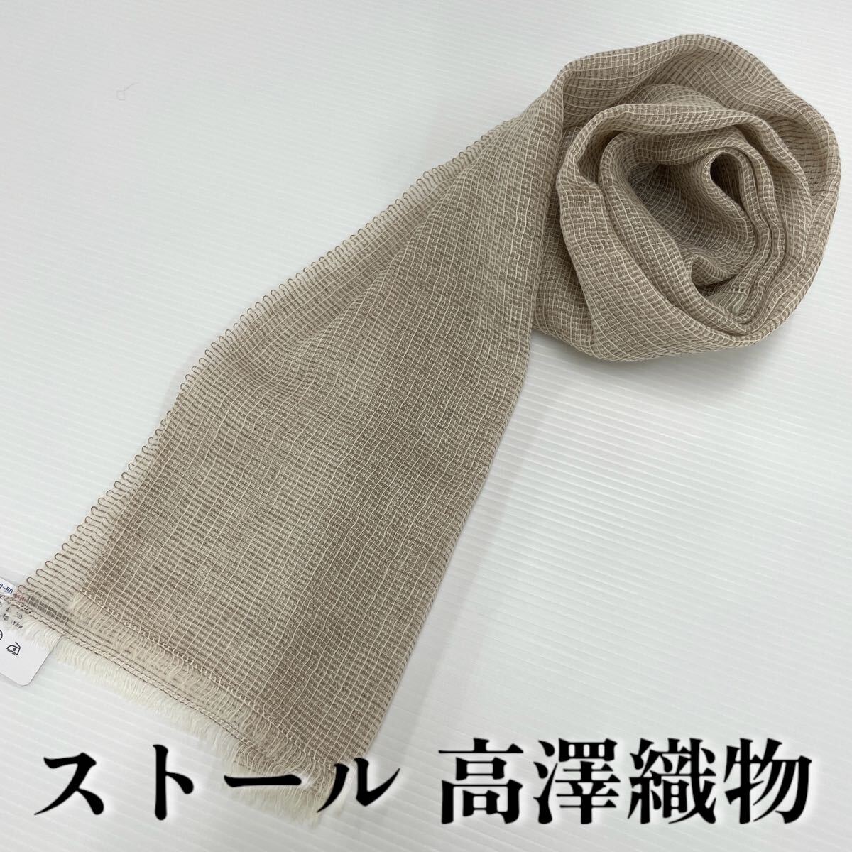 > 【ストール 高澤織物】未使用 茶 白 カシミヤ 絹 秋冬 スカーフ ショール 肩掛け 膝かけ 国産 日本製 防寒 #0263-346Z1