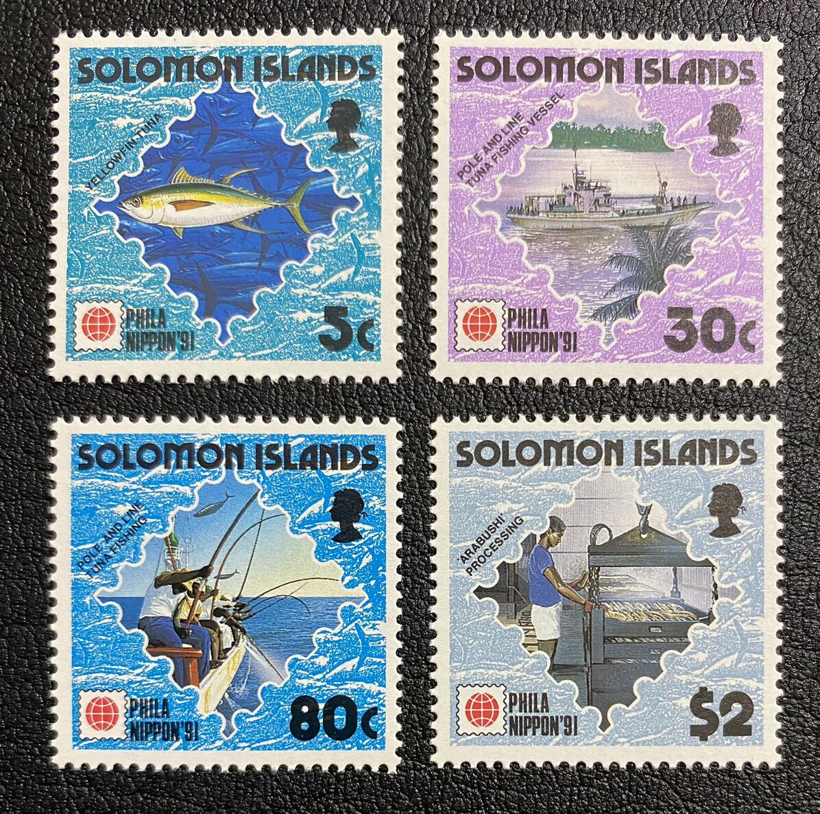 - ソロモン諸島 鰹節 日本国際切手展'91記念 魚 釣り 船 4種完 未使用 NH