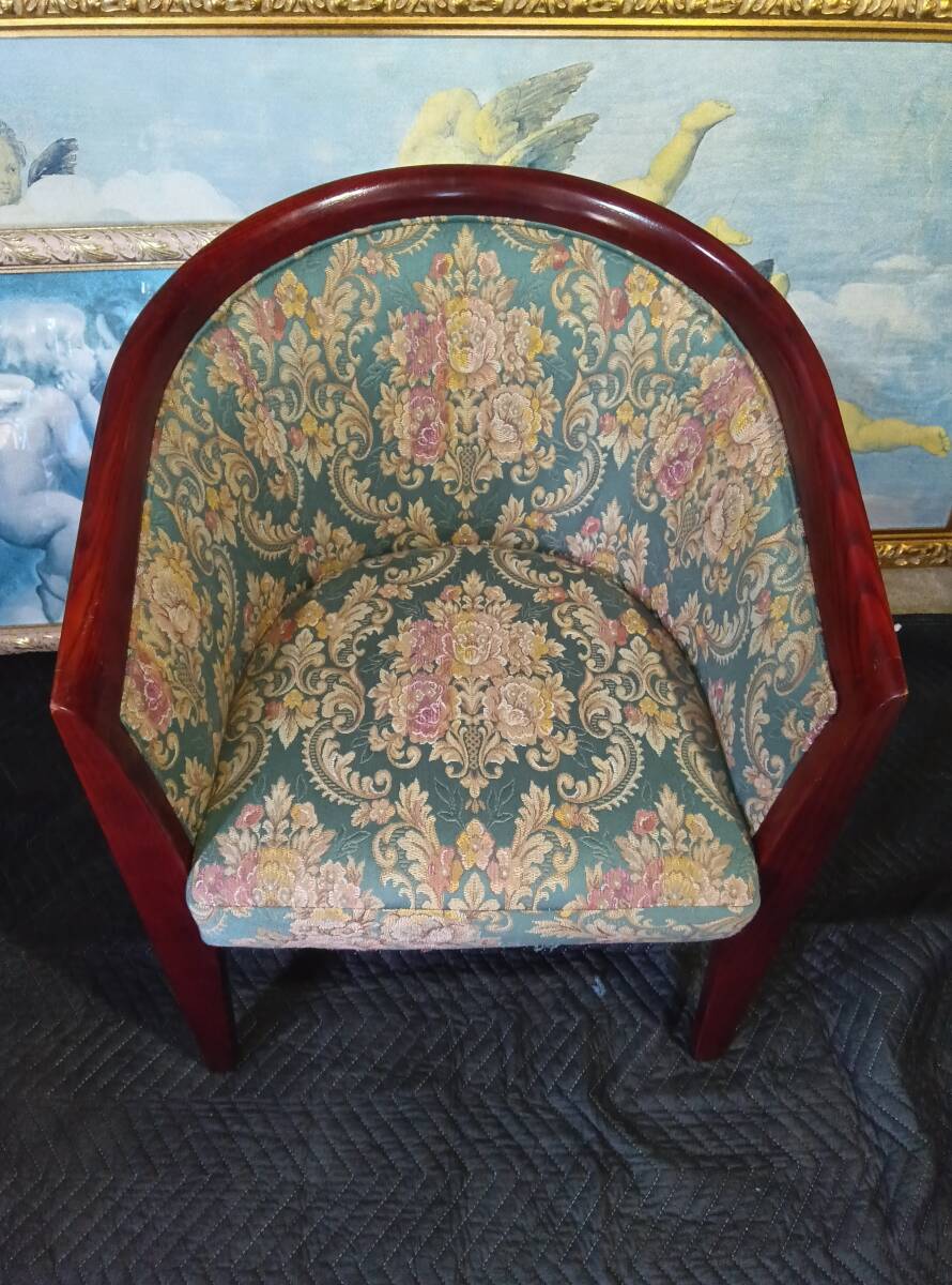 - 24090106② ラウンジチェア 椅子 アンティーク風 花柄 ソファ 木製フレーム