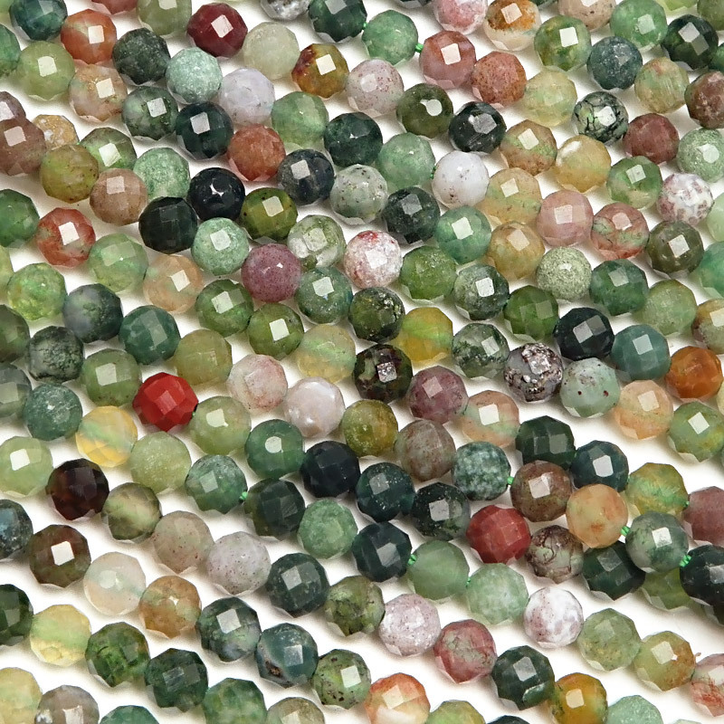 > インディアンアゲート 面カット 丸玉 3mm[プレミアムカット]【1連販売】 / 7-17 AG3MC-X