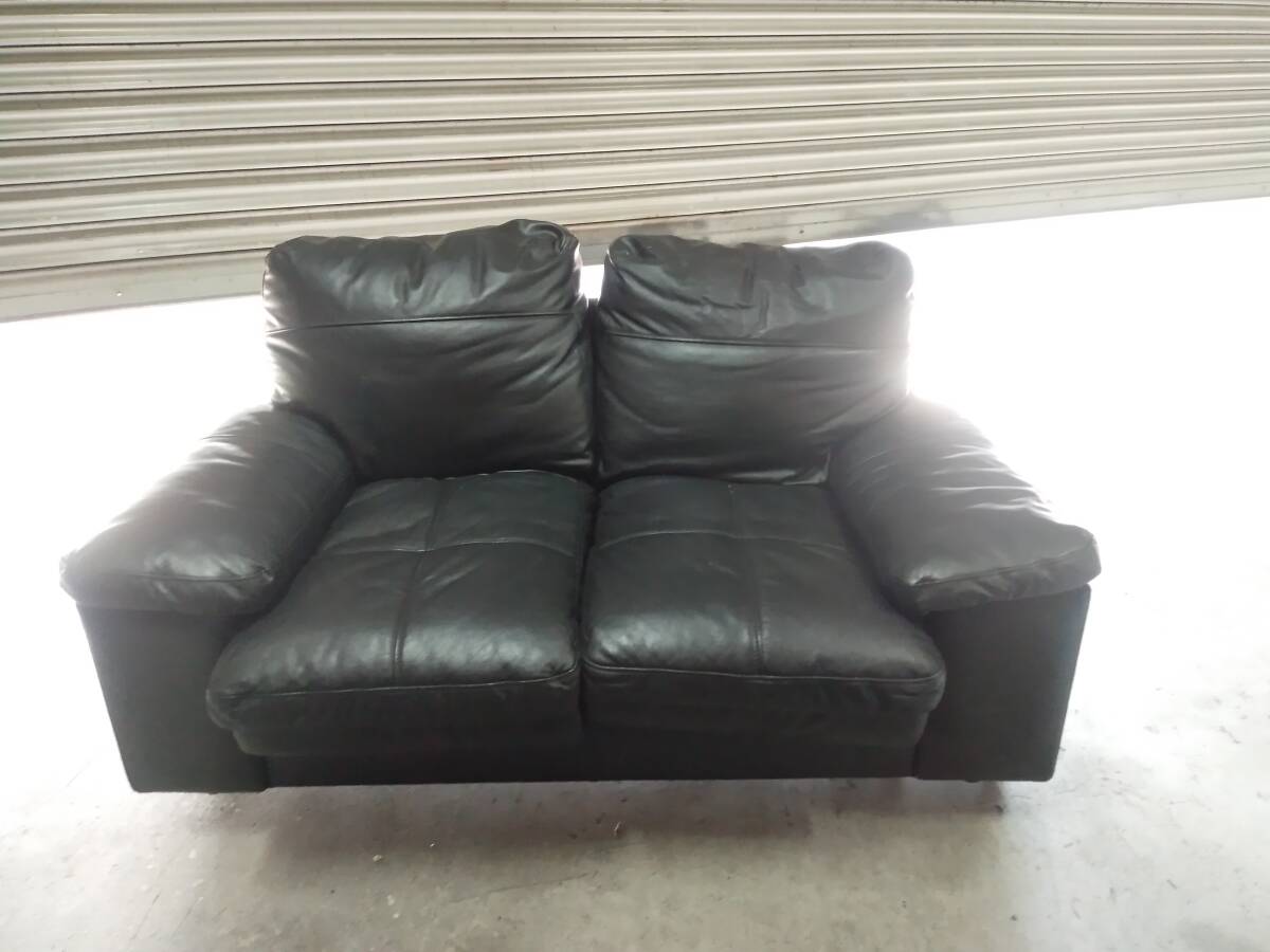 - 中古★引取り限定(大阪) 素材の柔らかい感触 2人掛け ローソファー ブラック