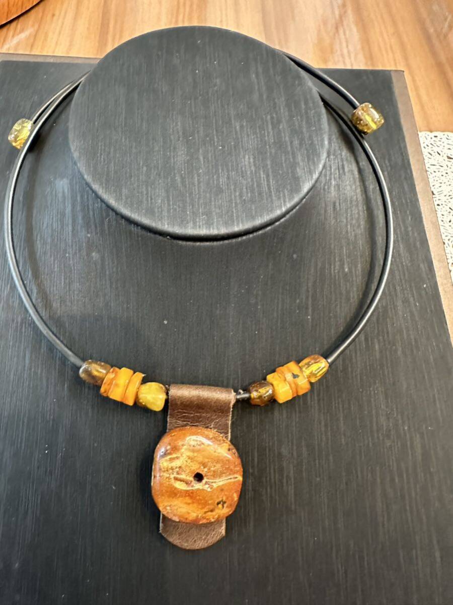 - V-885 天然琥珀 蜜蝋 鎖骨 ネックレス 天然保証