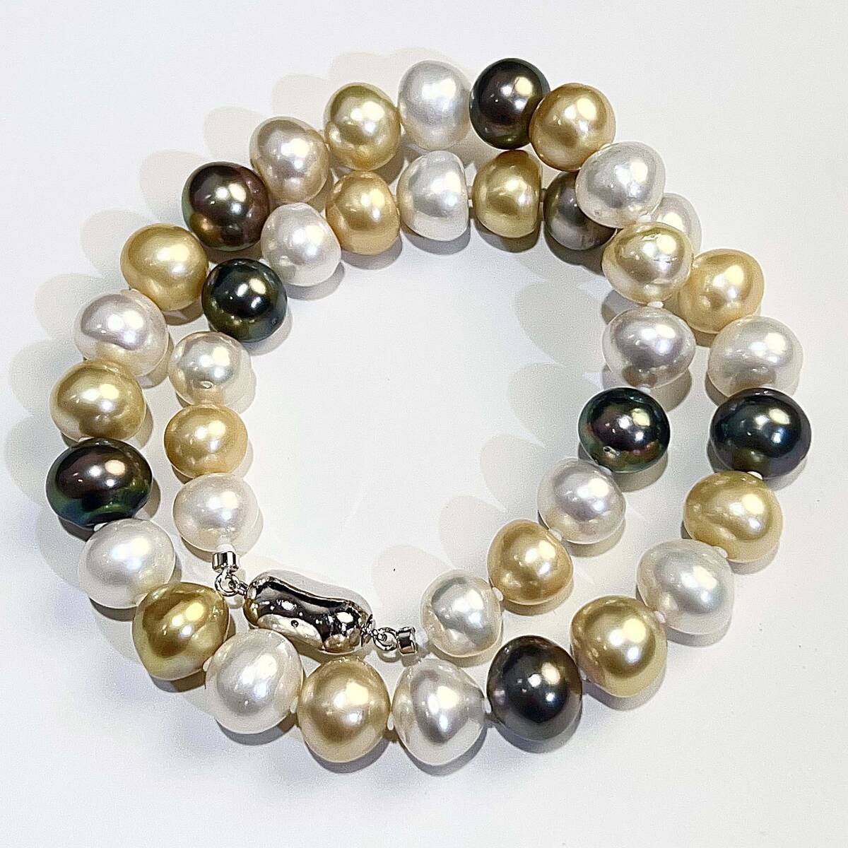 - SV 白蝶 南洋 黒蝶 タヒチ ゴールド ブラック シルバーグレイ パールネックレス 鑑別書 天然 本真珠 レディース アクセサリー 未使用