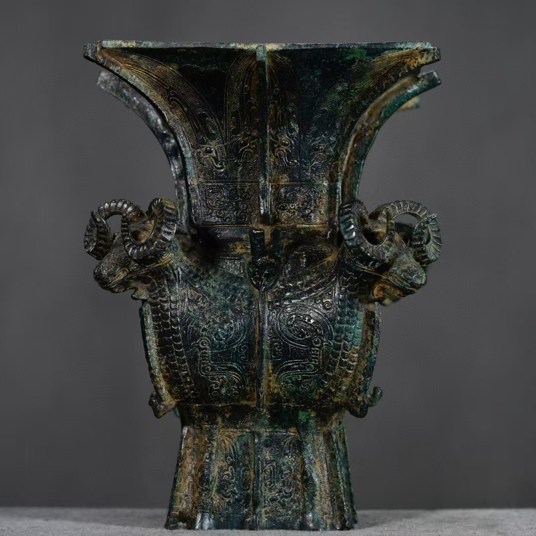- 古銅器 秘藏 【 商周時期 青銅 四羊方尊 恭請供奉 風水置物】 中國文玩 古美術品 高超的做工 精美的器型 9.5