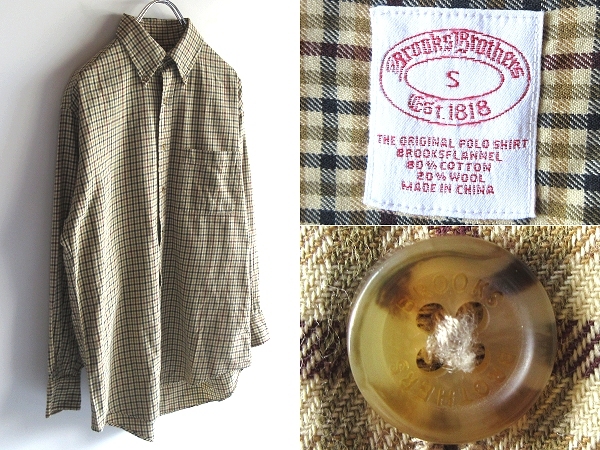 > ネコポス対応 Brooks Brothers ブルックスブラザーズ コットンウール チェック BDシャツ S ベージュ ボタンダウン 国内正規品