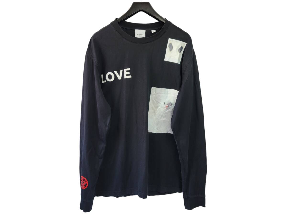 - バーバリー ロンT 長袖 LOVE モンタージュプリント ブラック サイズS BURBERRY