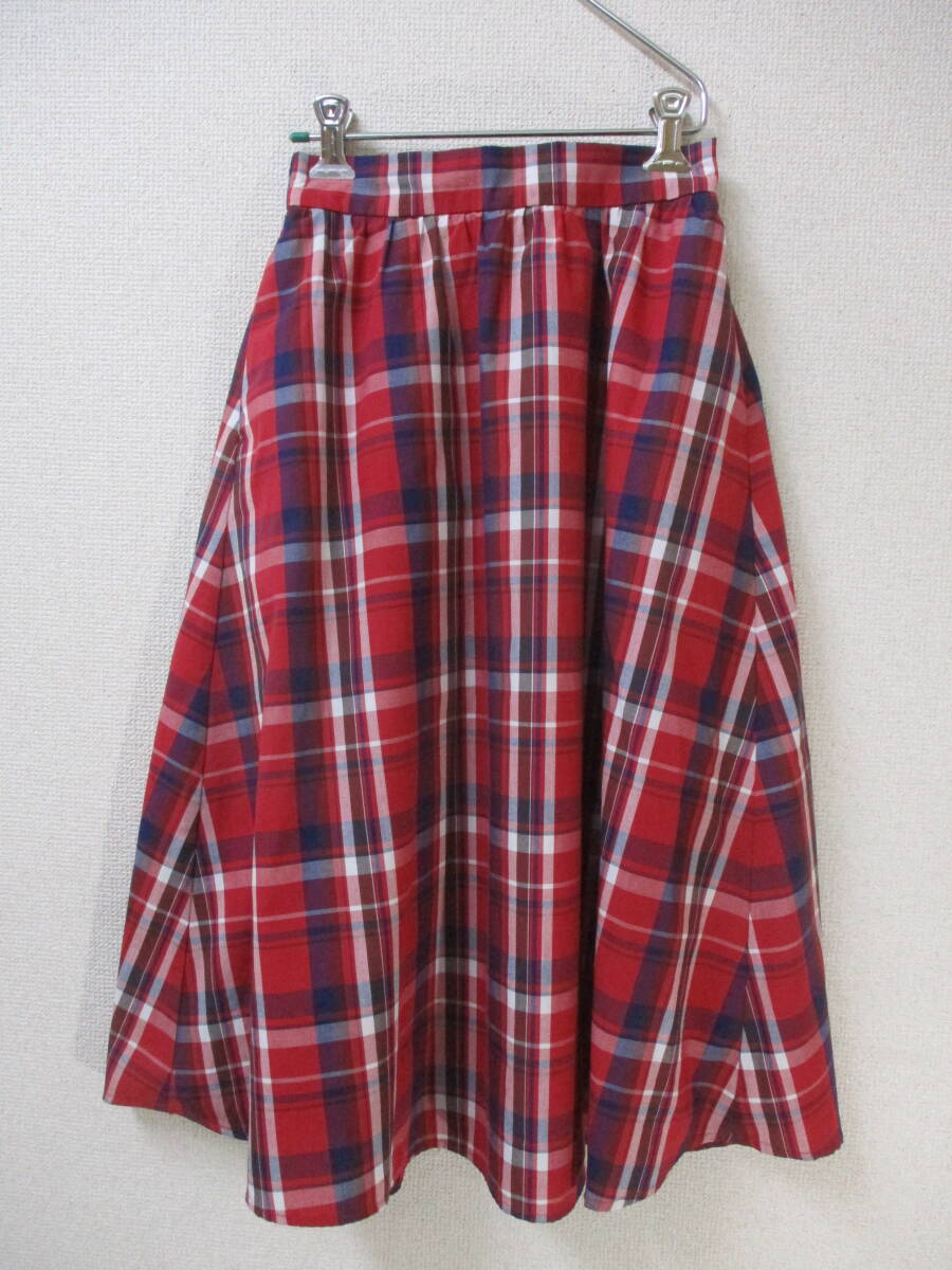- GU ジーユー WOMEN チェックフレアスカート S 赤系 ウエストゴム入 301960