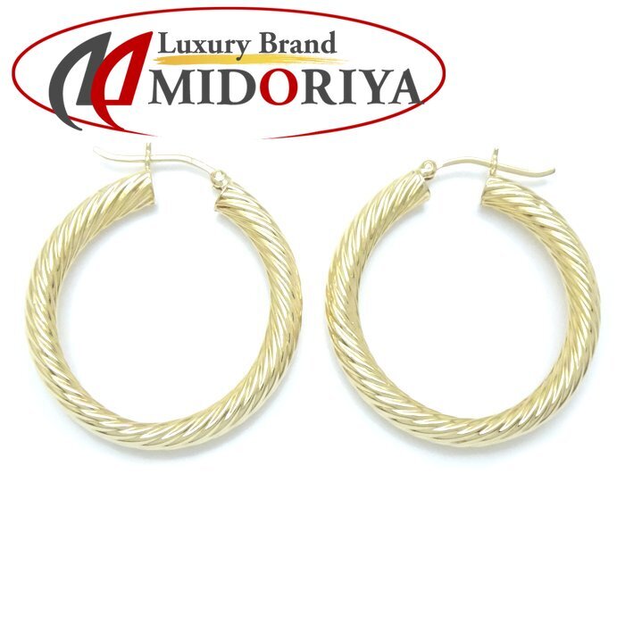 - ツイスト フープ ピアス 直径3cm K18YG イエローゴールド/28065【中古】