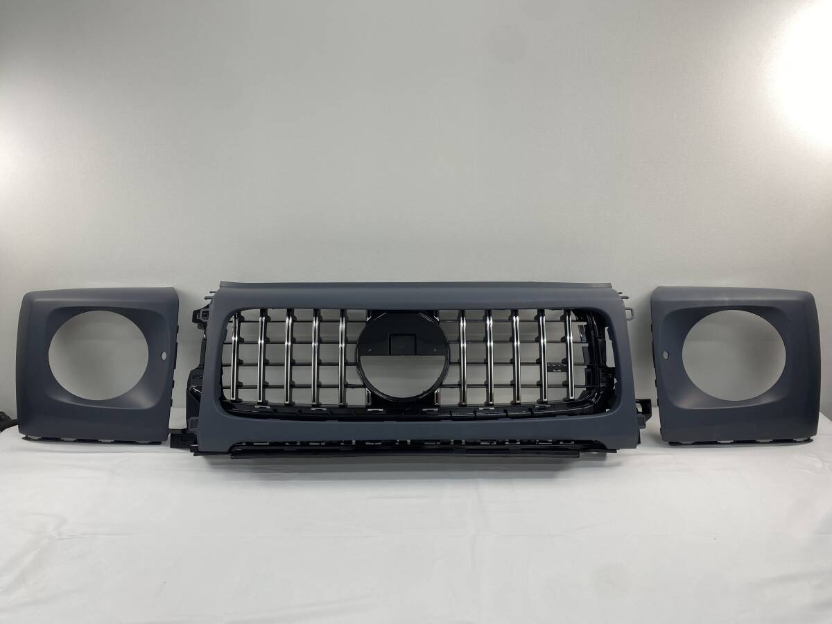 | Mercedes-Benz W463a W464 G-Class 2018y- | | | ・W464 Gクラスにお取付けする、パナメリカーナグリル,ヘッドライトカバーです。 ・未塗装です。 ・グリルフィンはクロームです。 ・スターマークは純正から移植してください。 ※スターマーク等移植の際は加工調整が必要な場合がございます。 ※写真の形状をお確かめください。 ※商品到着後、まず仮合わせをお願いいたします。 ※装着後、コーキング処理後、加工後の返品、交換はできません。 ※写真をよくご確認の上、ご落札をお願いいたします。 | | | ・パナメリカーナグリル ・ヘッドライトカバー