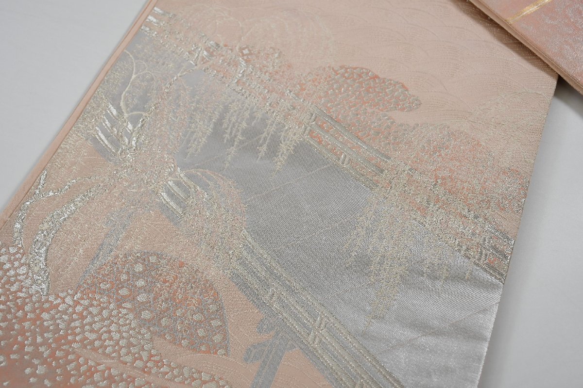 > 袋名古屋帯 柳一本橋 銀糸 正絹 帯丈416cm ★着物屋 ne-11492 桜庭呉服店