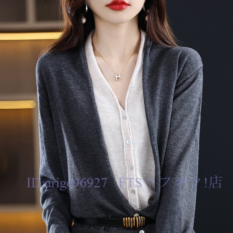 - A6051☆新品秋冬 カジュアル Vネック 暖かい 重ね着風 ウールカシミヤ混 レディース 配色 ニットコートトップス F グレー