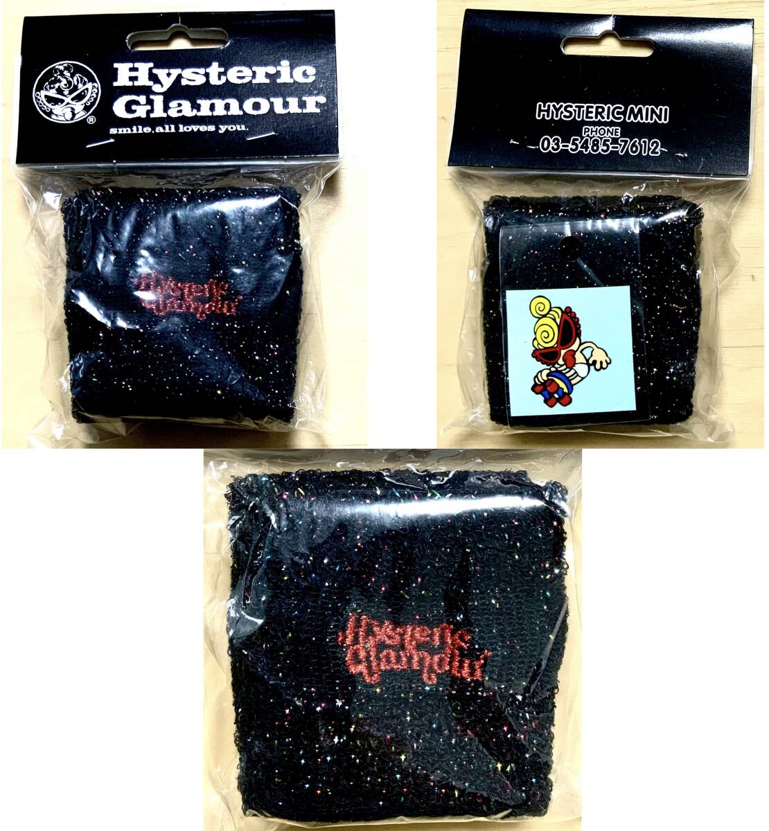 > 即決☆ヒスミニ☆正規品☆新品☆リストバンド☆2点組☆ブラックラメ☆シール付き☆ヒステリックミニ☆ヒステリックグラマー