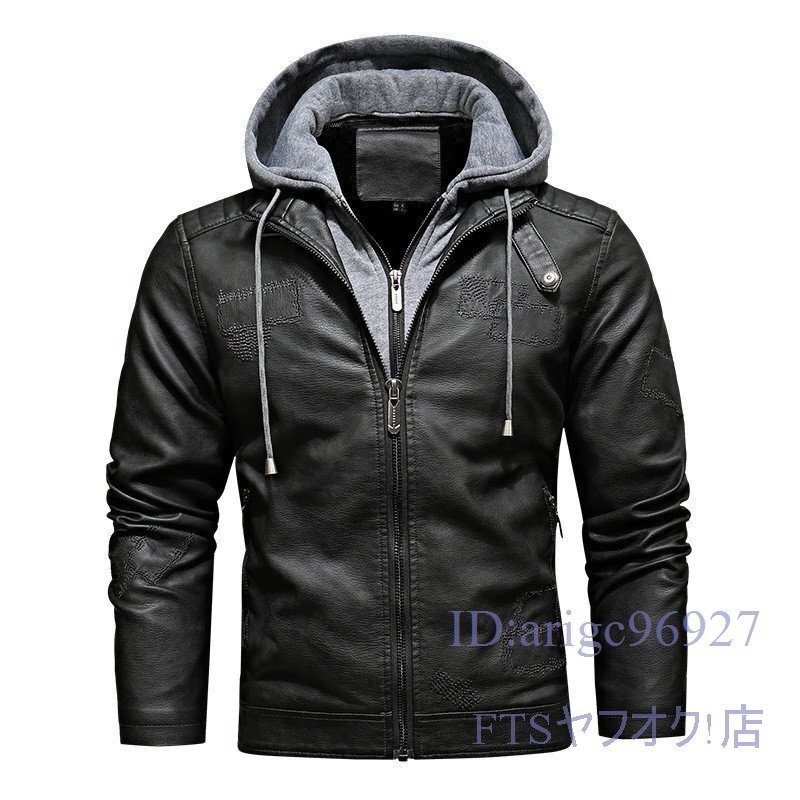 - U418☆新品ライダースジャケット メンズ 裏薄めボア トレンド フード付き ブルゾン コート バイクウエア【KH-50M】グレー XL