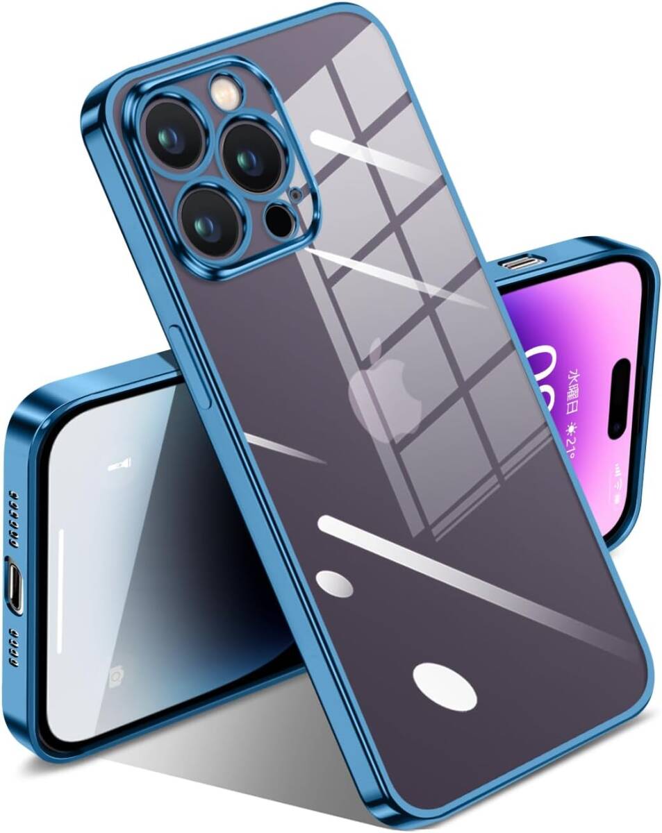 > iPhone 14 Pro Max ケース クリア 耐衝撃 透明 アイフォン14 Pro Max カバー メッキ加工 完全な保護 保護カバー(ブルー) K87