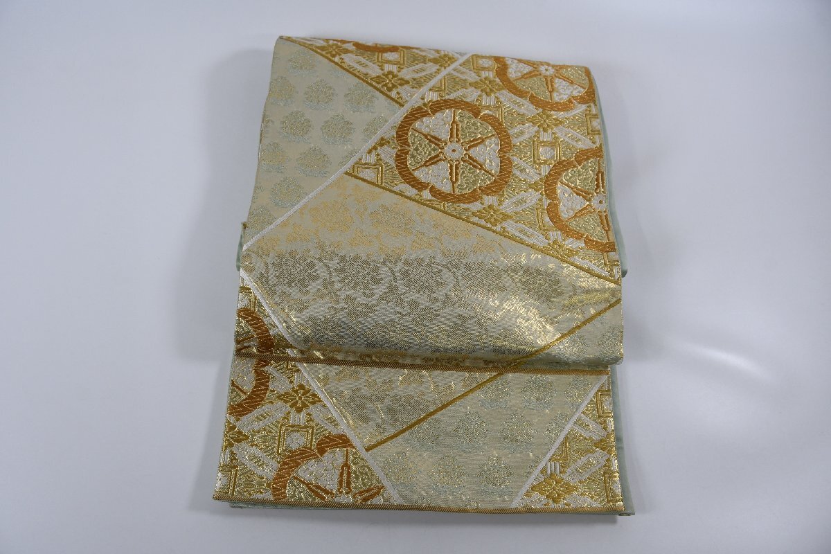 - 袋帯 輪車紋 割文 六通柄 正絹 光琳錦 花 帯丈422cm ★着物屋 ne-11700 桜庭呉服店