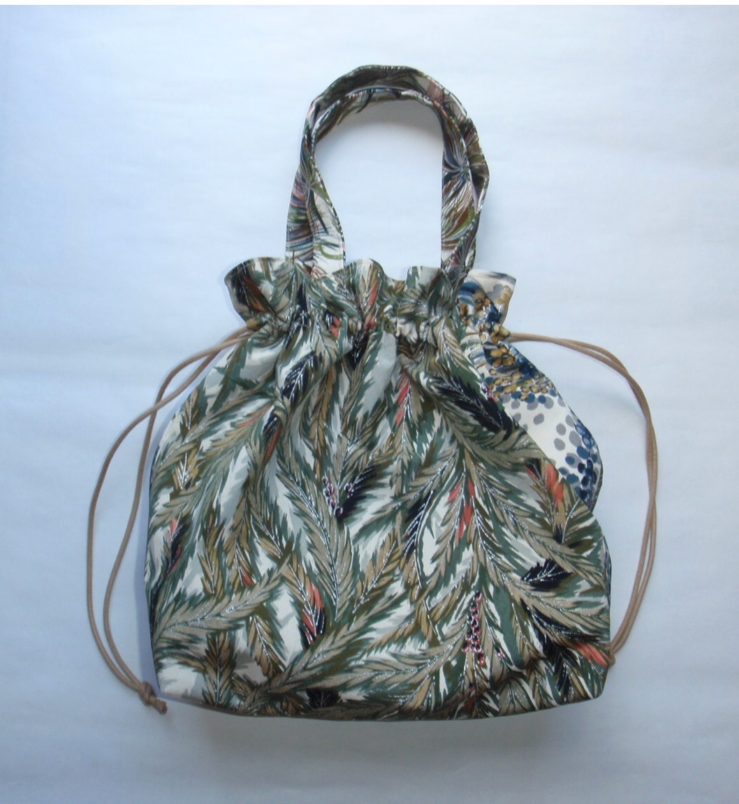 - 昭和レトロ反物生地使用 ■巾着トートバック■ 京都誂友禅 正絹 ハンドメイド ①