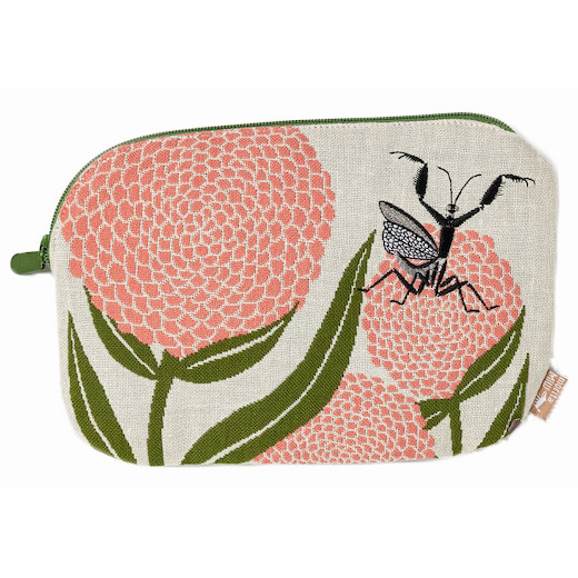 - morita MiW ポーチ 花とカマキリ ベージュ 表柄・裏生地・ファスナーのMiWカラー・ハーモニーが新鮮