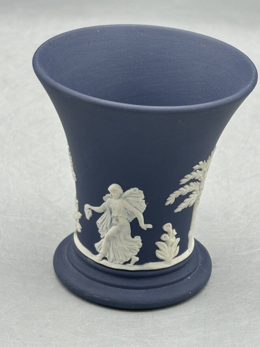 - 希少 英国 ウェッジウッド ジャスパーウェア ブルー 紺 花瓶 ダンシングアワー フラワーベース ジャスパー (779) レア *