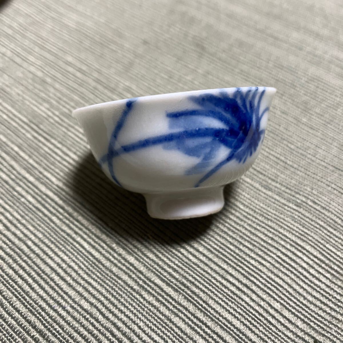 - 保管品23 年代物 ぐい呑み 花模様 白地 青柄