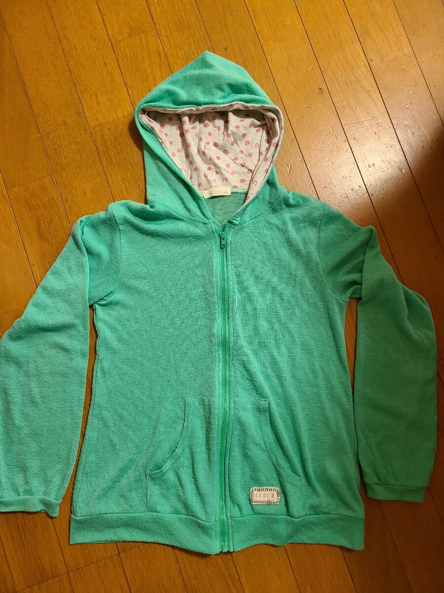 - パーカー ジップパーカー メッシュ ジップアップ 緑色 トップス サイズ150 羽織 カーディガン
