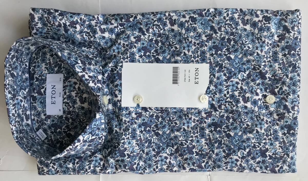 - 新品未使用 31,500円★イートン ETON★最高級 長袖 ドレスシャツ★高品質 コットン100%★40 15-3/4★ルーマニア製★青花柄★美しいフラワー
