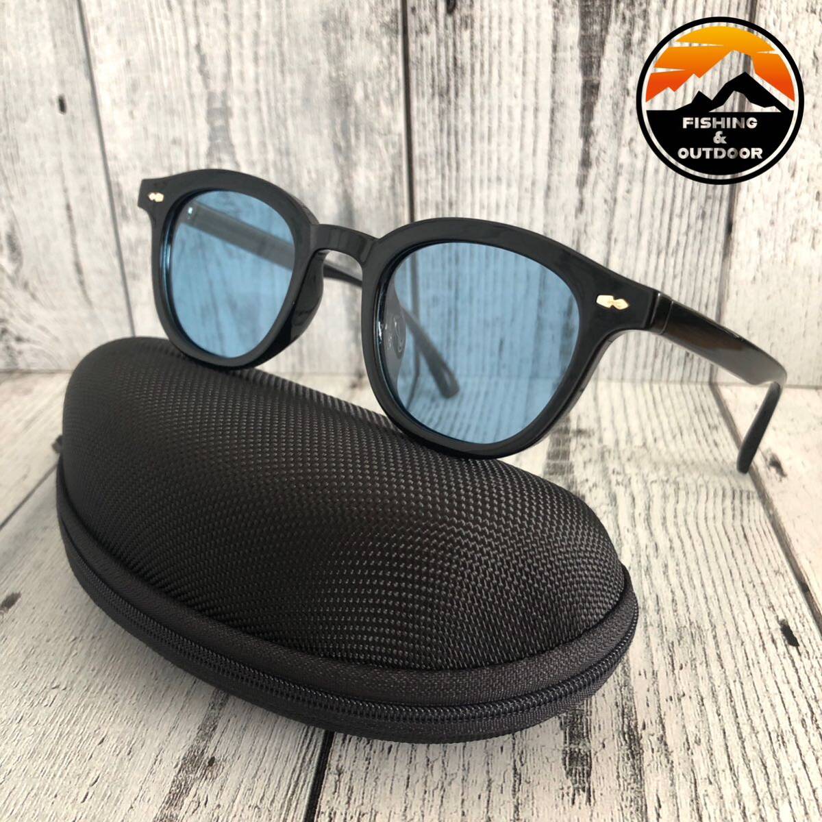 - サングラス 偏光 ドライブ ゴルフ 釣り メンズ レディース UVカット ボストン ライトブルー 紫外線対策 ハードケース付