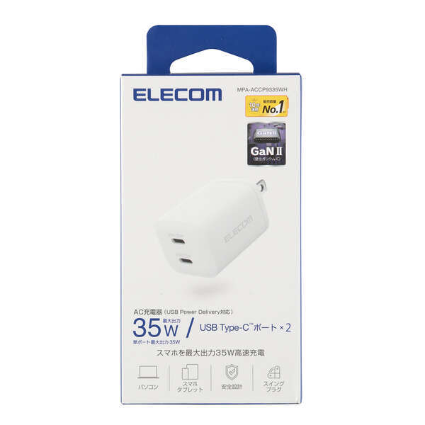 - USB AC充電器 USB Power Delivery準拠 最大出力35W USB Type-C×2ポート搭載 Macbook AirもiPhoneもこれ1つで充電可能: MPA-ACCP9335WH