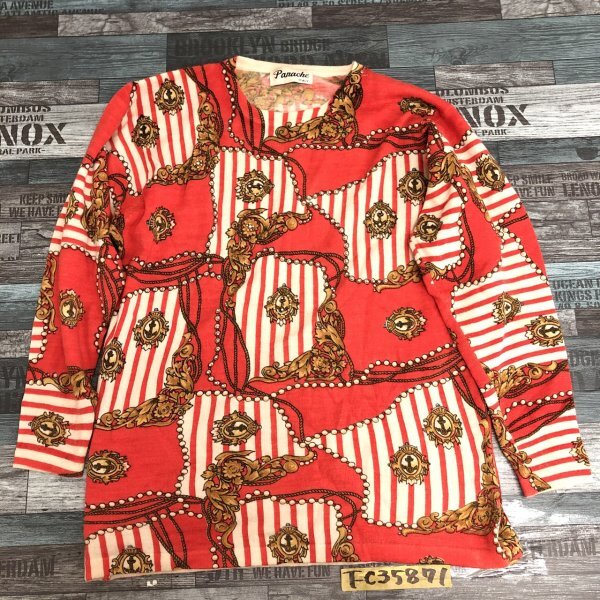 - PANACHE レディース ピュアウール100% 装飾 総柄 ニットセーター 赤