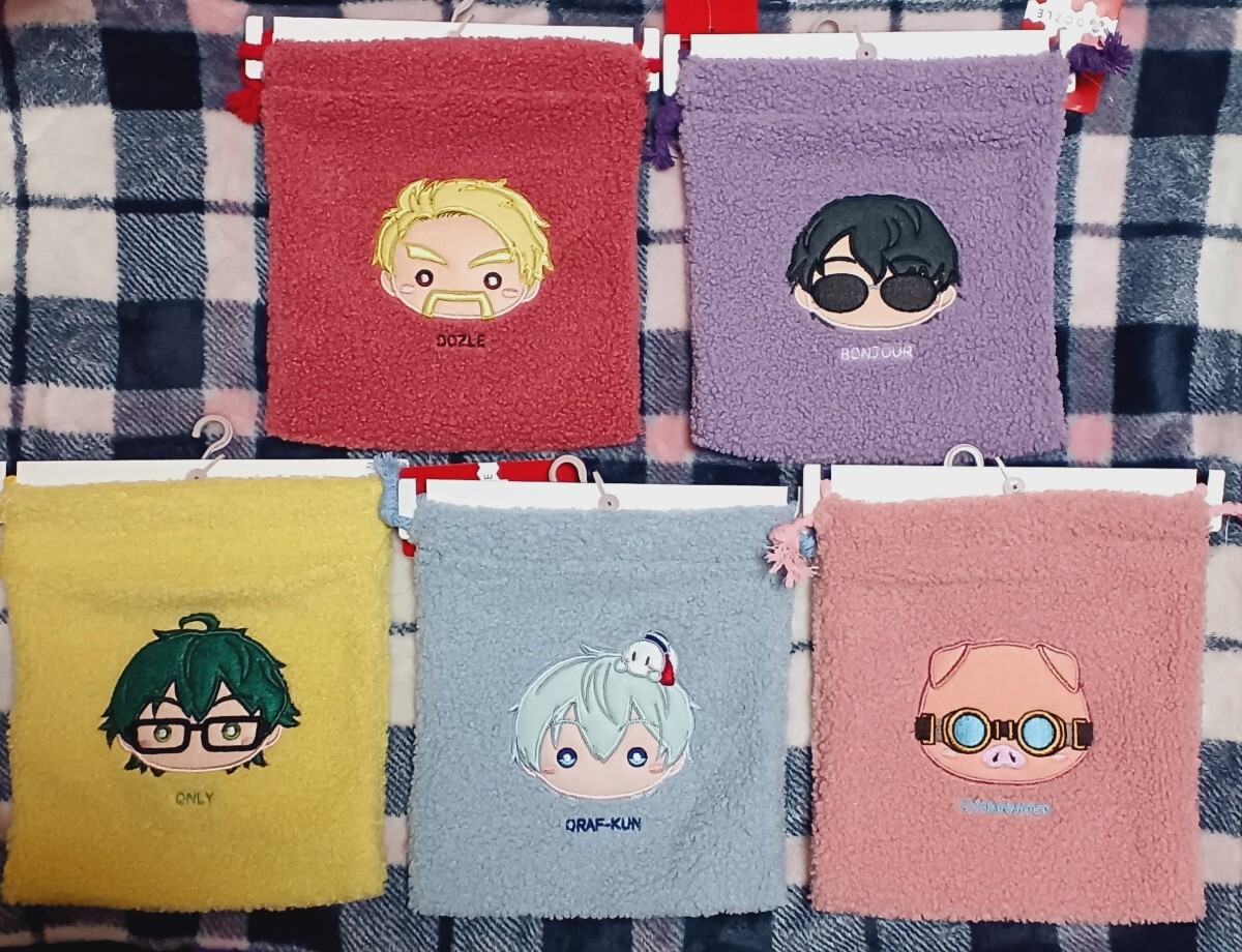 - 新品送料無料 ドズル社 巾着 5枚セット 箱推し ドズルさん ぼんさん おんりー おらふくん おおはらMEN 小物入れ