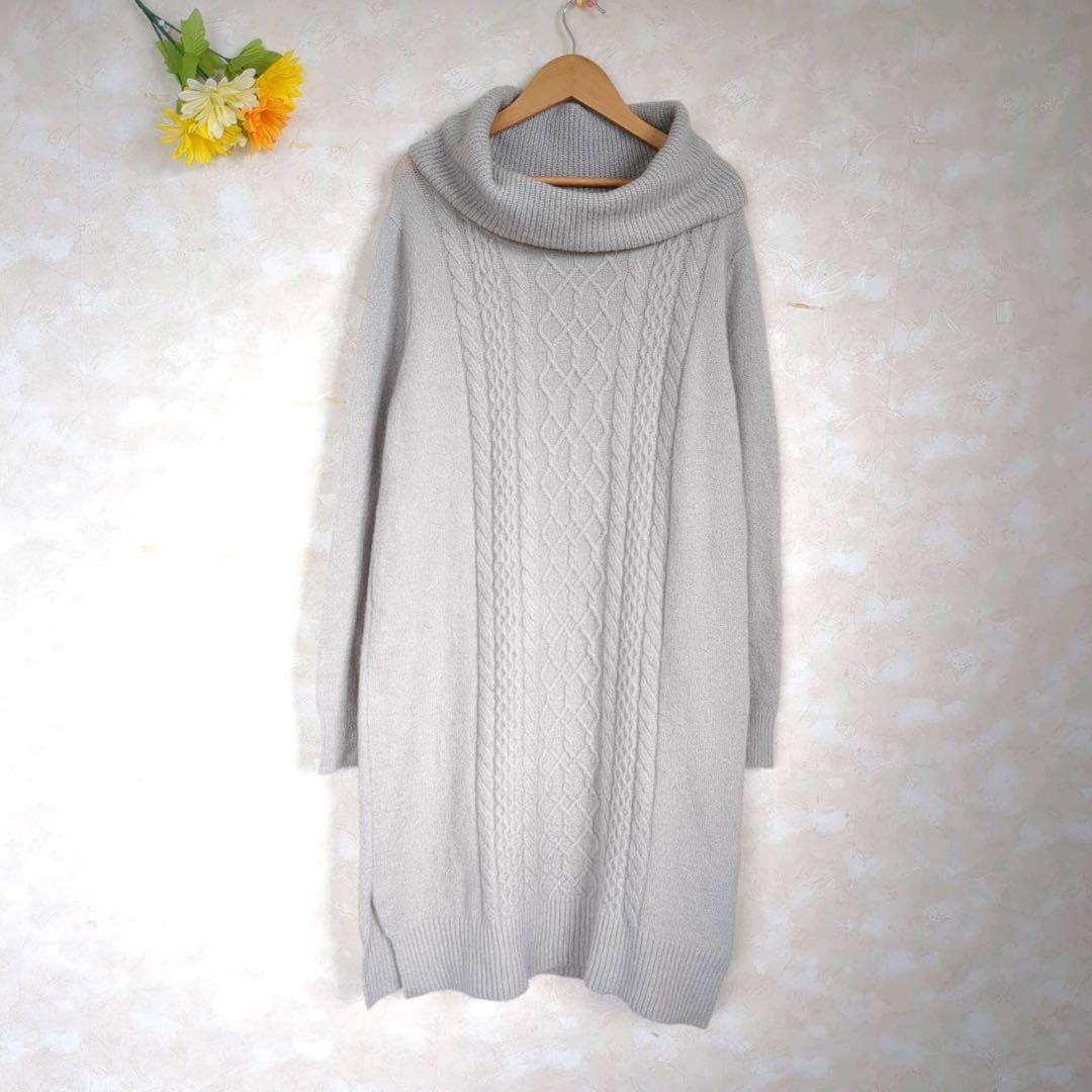 - 【L相当】ABAHOUSE ECRU ケーブルニットワンピ ボリュームネック