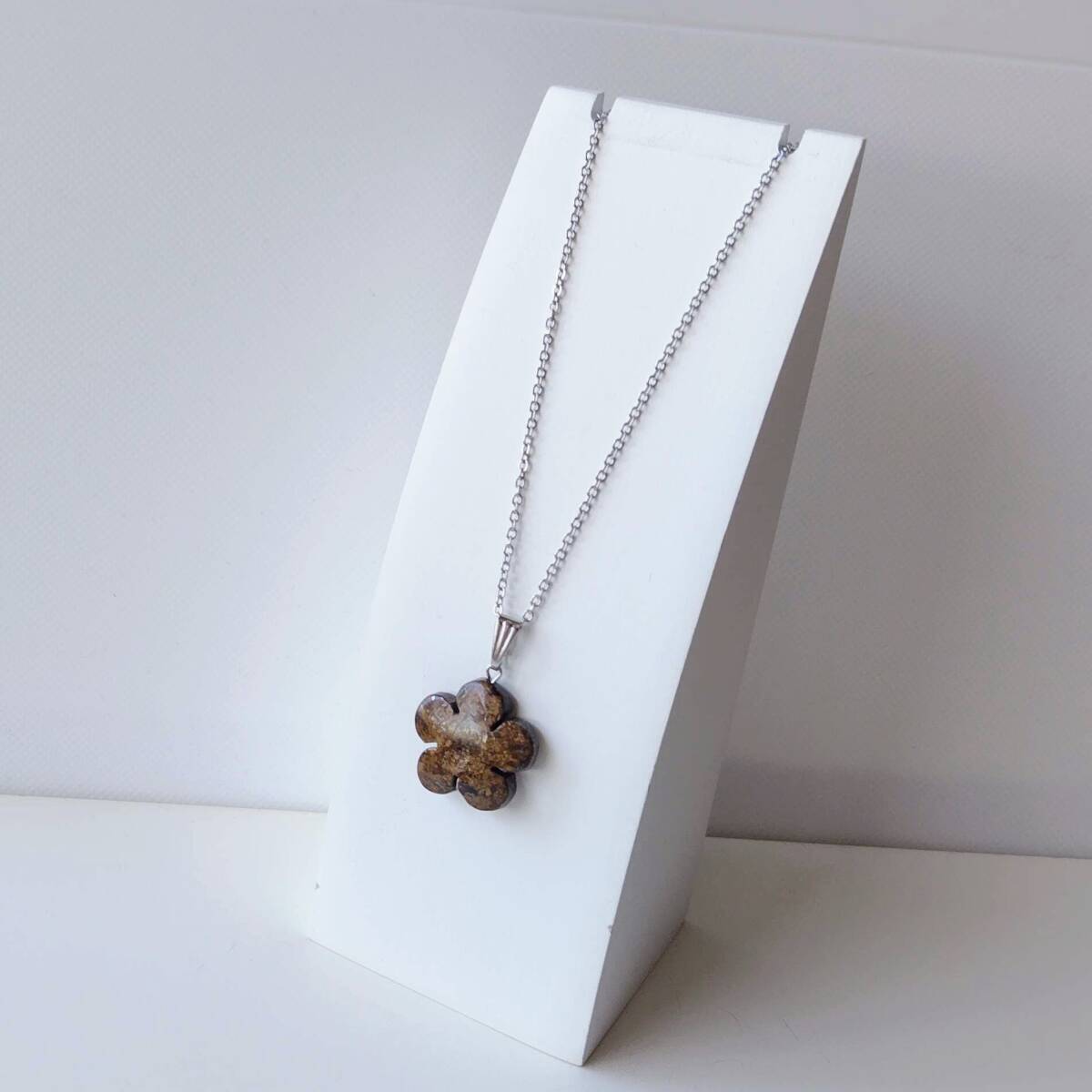 - 天然石ステンレスペンダント ブロンザイト花