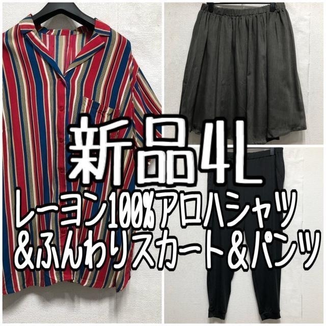 - 新品☆4L♪アロハシャツ&黒系楽ちんパンツ&ふんわりスカート☆x225