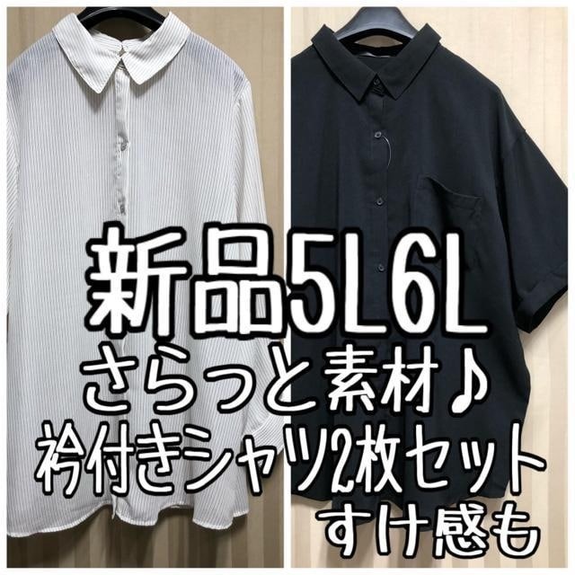 - 新品☆5L6L♪さらっと素材♪ゆるシルエット衿付きシャツ2枚セット♪うす手☆x631