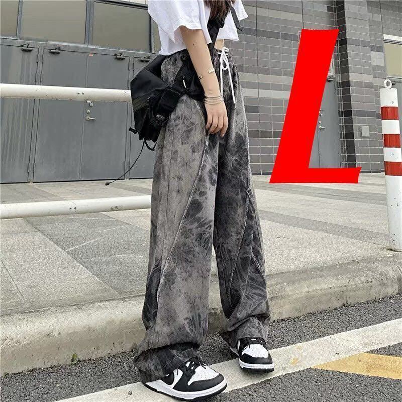 - ワイドパンツ ボトムス タイダイ柄 ルーズパンツ ワイドレッグパンツ グレー パンツ レディース フレアパンツ ワイド グレー L