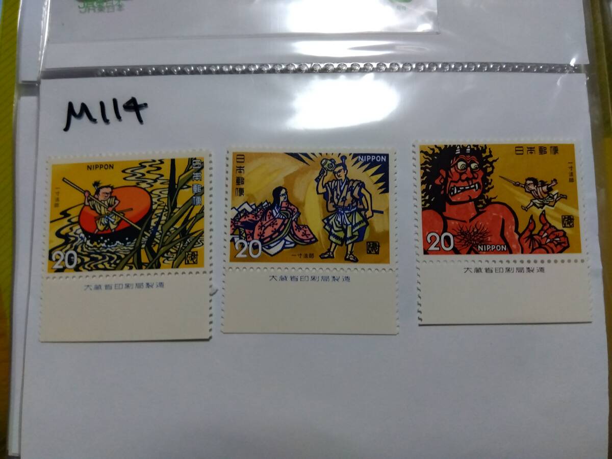 - ..未使用切手 昔話シリーズ 一寸法師 3種 銘版付き 20円切手