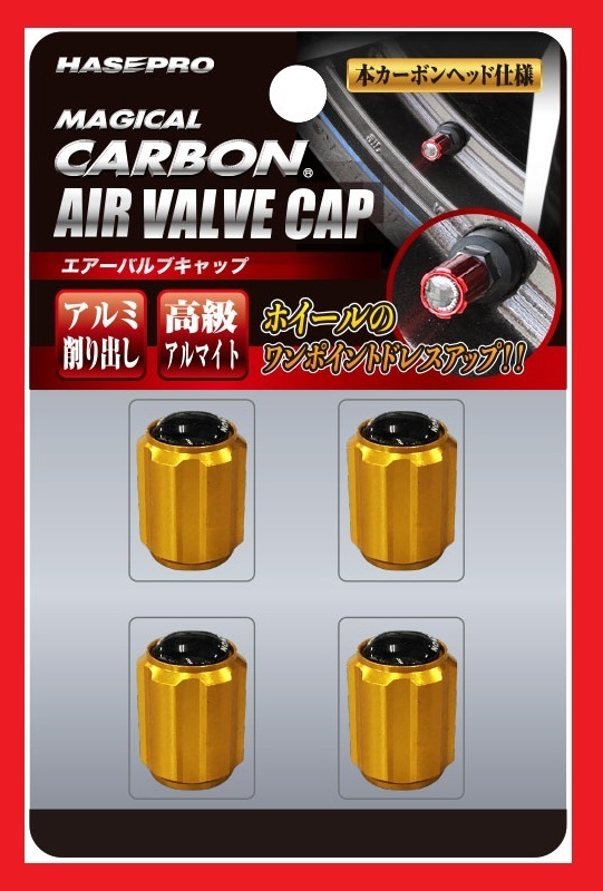 - 【ハセプロ】★マジカルカーボン・エアーバルブキャップ/ゴールド(CAV-1G)★アルミ削り出し!アルミホイールにワンポイントドレスアップ♪