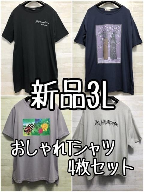 - 新品☆3L♪プリントや刺しゅうおしゃれTシャツ4枚セット☆f222