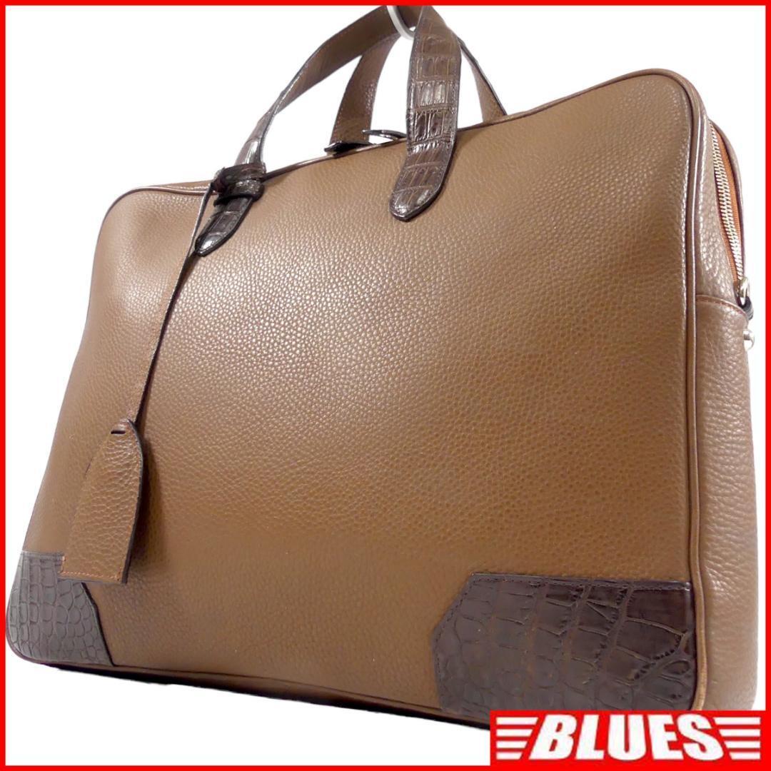 - 即決★N.B.★レザーコンビビジネスバッグ メンズ 茶 クロコ型押し ショルダー 本革 ブリーフケース 本皮 通勤 カバン 出張 鞄 レディース
