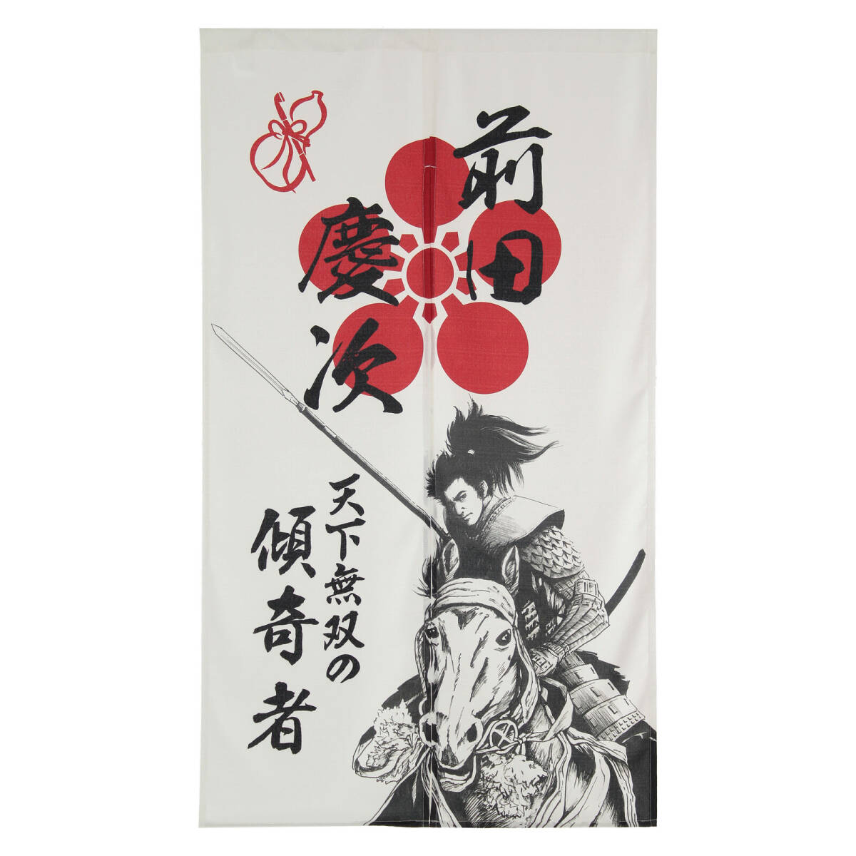 - のれん 戦国武将と家紋 前田慶次 和風 和柄 ホワイト 85×150cm
