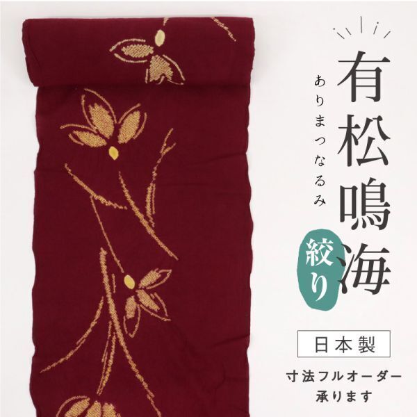 - 【有松鳴海絞り】 浴衣 反物 涼やか花模様 ワインレッド 夏着物 木綿 お仕立て可 反24-162