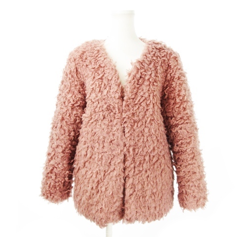 > ヘザー Heather ジャケット ブルゾン ファー Vカット ボリューム ループ もこもこ F ピンク くすみ /CK6 レディース