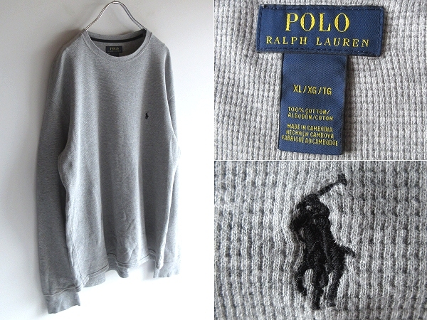 - POLO RALPH LAUREN ラルフローレン ポロポニーロゴ刺繍 コットン ワッフル サーマル クルーネック プルオーバー カットソー XL グレー