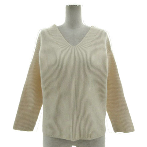 > ロペ ROPE ニット セーター GGM-3727-B Vネック 長袖 リブ 厚手 ウール混 アイボリー 38 レディース