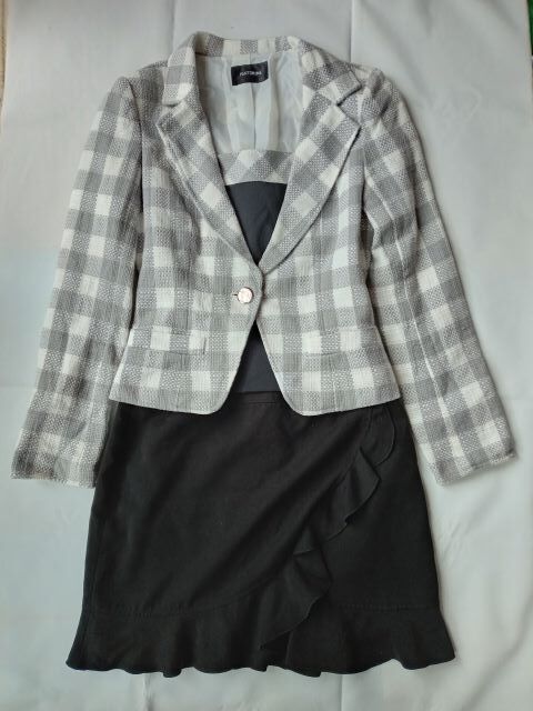 - PANTOMIME 白×灰色チェックのミニスカートスーツ 長袖 9号