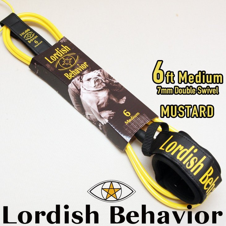 > ■Lordish Behavior■6ft ミディアム リーシュ MUSTARD 7mm オールラウンド Wスゥイベル マスタード ローディッシュビヘイビア サーフィン