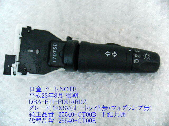 - ◆E11 DBA-E11 日産 ノート 後期 H23年 ヘッドライトスイッチ ライトスイッチ ディマースイッチ 25540-CT00E [13443]