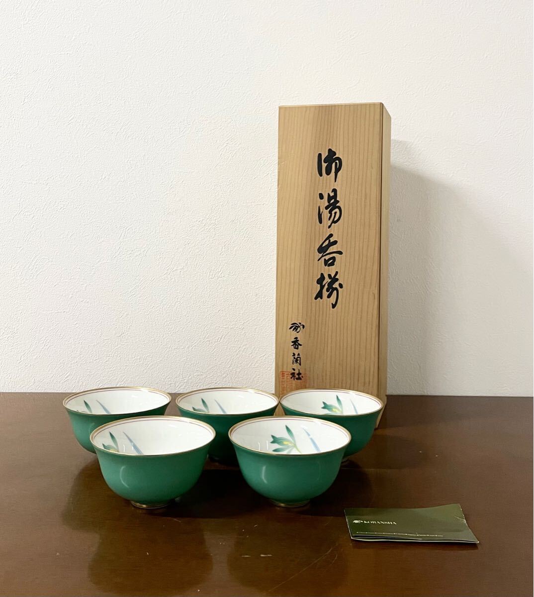 - KCK686 新品未使用 香蘭社 御湯呑揃 5客 グリーン蘭 湯呑 茶器 食器 和食器 蘭
