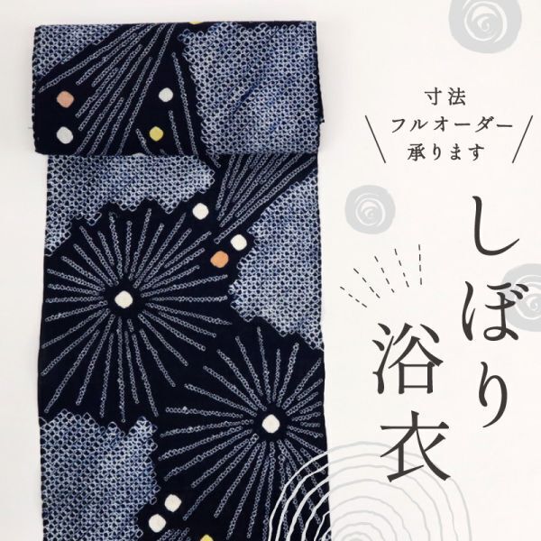 - 【反物】 浴衣 しぼり 菊花模様 濃紺 木綿 夏着物 お仕立て可 反24-136