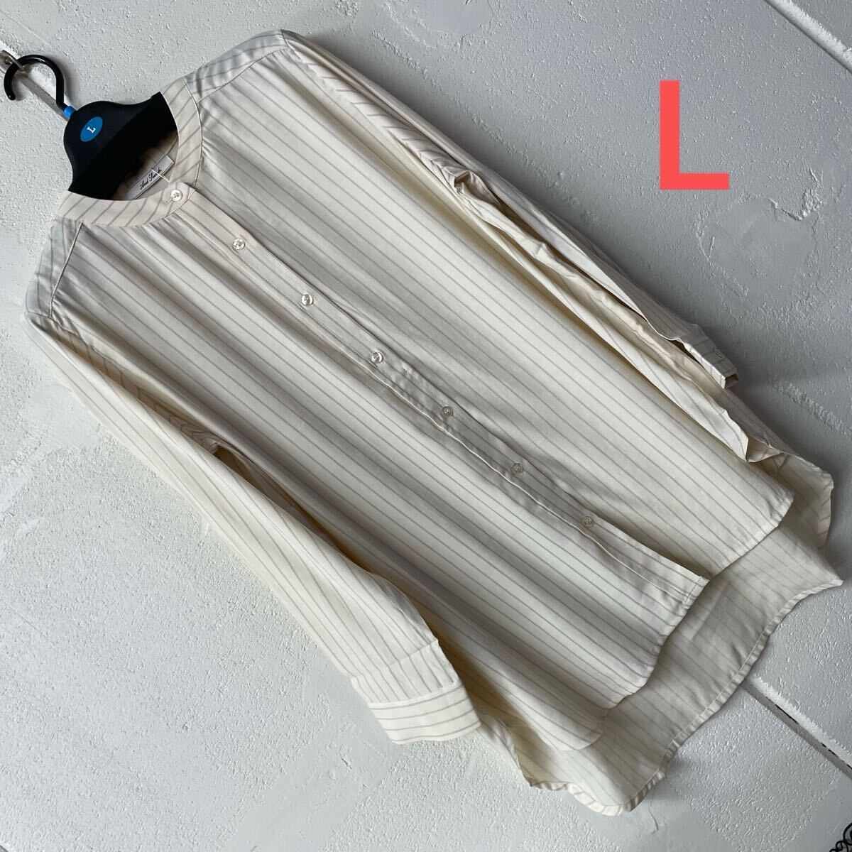 - Lサイズバンドカラーストライプシャツチュニック クリーム色